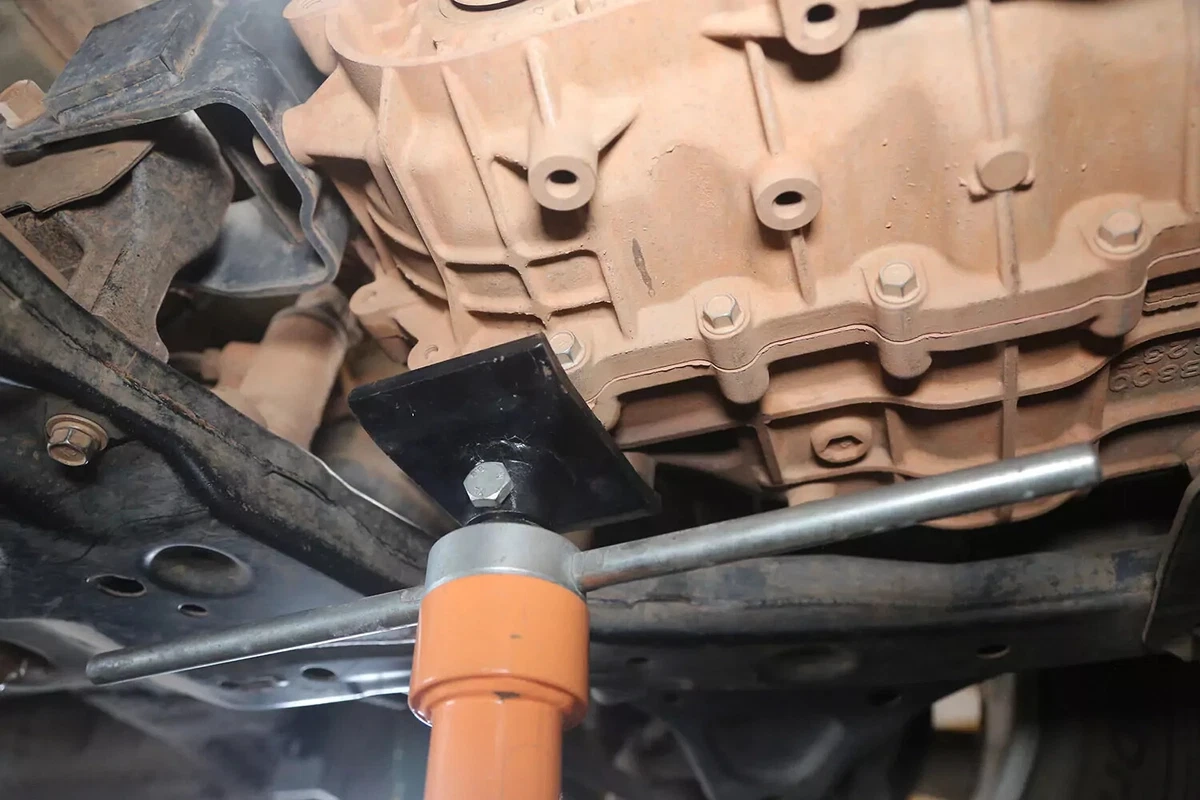 எங்கள் டெமோ வாகனத்தில், டிரான்ஸ்மிஷன் மவுண்ட் அடைப்புக்குறிக்குள் மவுண்ட்டைப் பூட்டும் ஆதரவு குறிப்புகள் உள்ளன. மவுண்ட்டை இலவசமாகப் பெற கூடுதல் லிப்டைப் பயன்படுத்த வேண்டியிருந்தது.